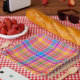 A modern fun checked plaid in a bright multicolored pattern. Hot pink, red, yellow, green, blue, orange colors inspired by the popular Madras plaid prints of the '50s