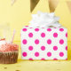 A wrapping paper built with a hot pink polka dot pattern with a medium distance between the dots on a white background. Customize the white background among other options.