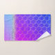 On thi stylish towel set is a dreamy ombre blue purple pink mermaid pattern with glittery silver bling edging to glam up any bathroom decor. Whimsical glam glittery vibes.