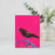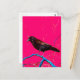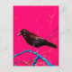 Retro Raven with a hot pink background. Digital portrait painted in blue, black and neon pink. Raven perched on tree branch with the sky in the background. Hot Pink Raven Crow Black Bird