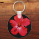 Hot Pink Red Hibiscus flower on Black Keychain