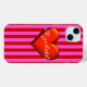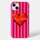 Hot Pink Red Stripe Red Metallic Heart Monogram Case-Mate iPhone Case
