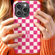 Hot Pink Retro Checkered Pattern Monogram Case-Mate iPhone Case