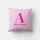 Hot Pink Retro Dolly Monogram Throw Pillow
