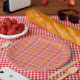 Hot Pink Retro Plaid with Orange and Blue Round Pi Paper Plates