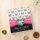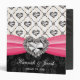 This glitzy and glam wedding organizer binder in hot pink fuchsia and black has a printed heart shaped rhinestone look design on a satin bow and criss-cross solitaire diamond pattern. This girly and stylish wedding planner binder has a subtle, floral damask pattern background. It can be personalized with the name of the bride and groom, wedding date, album title on its spine and customized with a special message or favorite quote on the back. Artwork © Chrissy H. Studios, LLC. All Rights Reserved.