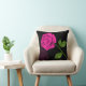 Hot Pink Rose Flower On Black Background Throw Pillow