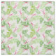 Tropical hair dresser pattern with pink scissors and green palm fronds against a white background.
