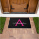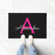 Black and Hot Pink Simple Script Monogram Name and Initial House Doormat. This makes the perfect sweet 16 birthday, wedding, bridal shower, anniversary, baby shower or bachelorette party gift for someone that loves glam luxury and chic styles.