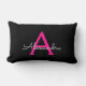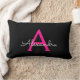 Hot Pink Script Girly Monogram Name Lumbar Pillow