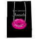 Hot Pink Shiny Lips on Black Birthday Medium Gift Bag