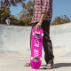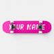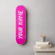 Skateboard deck featuring a bold hot pink design with customizable name space. Perfect for street skating, tricks, or as a fun and personalized gift for skateboard lovers.