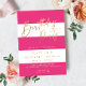 This design features a hot pink stripe design with a real gold foil heading. The script heading is an image that cannot be edited. All of the other text is fully editable. For more advanced customization of this design, simply select the "Customize It" button above.