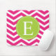 Hot Pink White Chevron Green Monogram Mouse Pad
