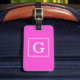 Hot Pink White Framed Initial Monogram Luggage Tag