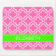 Hot Pink White Moroccan #6 Lime Name Monogram Mouse Pad