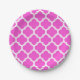 Hot Pink White Moroccan Quatrefoil Pattern #5 Paper Plates