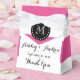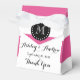Hot Pink White Stripes Pattern, Black Monogram Favor Boxes
