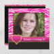Hot pink, white zebra & heart 20th birthday photo invitation