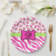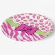 Hot Pink White zebra Leopard Skin Monogram Initial Paper Plates