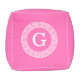 Hot Pink Wht Greek Key Rnd Frame Initial Monogram Pouf