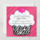 Hot Pink Zebra Girls Cupcake Birthday Party Invitation