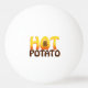 Hot potato with a little brown spud surrounded by flames peeking out from the O in Hot. The word hot is in a yellow to orange gradient and the word potato is in brown.