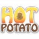 Hot potato with a little brown spud surrounded by flames peeking out from the O in Hot. The word hot is in a yellow to orange gradient and the word potato is in brown.