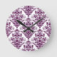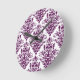 Hot Purple and White Elegant Damask Pattern Round Clock