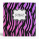Add your own custom monogram initials, name or other text to this funky and fashionable zebra print merchandise with hot pink and purple gradient background and black zebra stripes. A lovely gift for the teen girl or lady with class and style. Festive and bright colorful design makes a great item for any woman. Has a lovely modern pattern, with a cute shaped-frame border, and cheerful script writing.