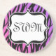 Hot Purple/Pink Zebra Stripes Monogram Coaster