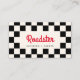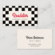 This modern business card design features a masculine black & cream checkered pattern background with retro style script on the front. On the back is a simple cream background with minimal typography on the back. It has a cool, modern look and would make a great first impression for an auto mechanic, racing company, bbq caterer, auto detailer, etc. You can further customize this design by changing the background colors, font colors, or adding your own photo.