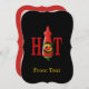 HOT letters with the O made with a chily pepper sauce bottle over red seamless background.