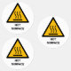 Our "hot surface warning" labels are meticulously designed to enhance safety and effectively notify individuals of dangers in various settings. This particular label serves as an essential tool for identifying and cautioning individuals about hot surfaces, thereby reducing risks and promoting preventative measures. With its ISO 7010 compliance, our warning label ensures international standards for hazard communication are met, providing reliable and standardized messaging specifically for hot surface warnings. Featuring a bold and eye-catching design, our "hot surface warning" label stands out and is easily noticeable in any environment where hot surface hazards are present. The label serves as a visual reminder of the danger, effectively raising awareness among employees, customers, or visitors. Its clear and concise message helps individuals exercise caution and take necessary precautions when encountering hot surfaces. By prominently displaying our "hot surface warning" label on containers, equipment, or areas with hot surfaces, you can effectively communicate the potential risks and encourage responsible handling and storage practices. This proactive approach significantly minimizes the likelihood of accidents, protecting lives, property, and the environment from burns or other hot surface-related injuries. Trust in our labels and signs, designed with a focus on safety protocols and compliance with industry regulations, to enhance safety measures and maintain a safe environment. Investing in this vital tool today demonstrates your commitment to prioritizing the safety of everyone in your facility. Furthermore, you have the flexibility to customize the text on our labels to indicate the precise nature of the hot surface hazard, enabling clear communication and identification. Safeguard your workplace with our reliable and compliant "hot surface warning" labels.