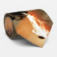 An effect photo of what seems to be liquid fire (opposed to water) pouring from a matte chrome water faucet (or tap) into a white porcelain sink.