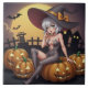 Hot Witch in Halloween Pumpkin Patch Ceramic Tile