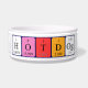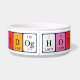 Hotdog spelled out as H O T D Og (Hydrogen Oxygen Tritium Deuterium Oganesson) on a pet bowl for the scientist in your best friend.