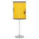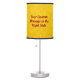 The lamp looks exactly like the picture, bright and colorful. The lamp shade is plastic not what I expected, however I love it! The printing is clear and the name can easily be read.