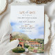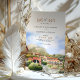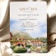 Announce your wedding with a touch of Italian elegance with this "Save the Date" card, featuring a beautiful watercolor illustration of the iconic Hotel Il Pellicano in Porto Ercole, Italy. The artwork captures the charm of the Italian countryside with lush greenery, warm terracotta architecture, and a serene sky in soft blue hues. Perfect for a destination wedding on the Italian coast, this card reflects the romantic allure of Tuscany, inviting guests to celebrate in style. Set the tone for a wedding filled with timeless beauty and Mediterranean charm.