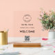 Hotel Logo QR Code Reception Welcome Sign. Easily replace the sample image with your logo and change the words to your own details, and change the sample url to that of your own website url to automatically generate your own QR code.