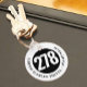 Hotel Room Keyring or Keychain with the hotel name and address plus room number. Black and white design.