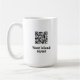 Hotel Cafe coffee mug "with QR Code. Show off your own QR Code Design. Let others scan your QR Code With their mobile phones! Replace image with your own uploaded QR Code. Includes name of the establishment. Black and white. There are various websites that allow you to create and download QR Codes free. QR Codes can be created for websites, emails, Wifi, Vcards, and many other uses. One example is https://www.qr-code-generator.com