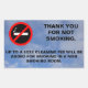 Hotel room no smoking sign. Thank you for not smoking. Up to a $$$ fee will be added for smoking in a non smoking room. Custom fine. Sky background.