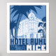 Vintage art deco travel poster for the Hotel Ruhl, Nice on the french Riviera.