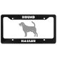 Bold Black and White "Hound Hauler" License Plate Frame perfect for your dog's ride. Text is customizable.