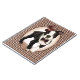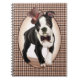 Cute Boston terrier puppy with top hat and houndstooth background, painted by artist Maryline Cazenave.