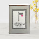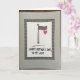 Designed with a warm, wooden tabletop in the background, this greeting card features a centered white rectangular panel that draws your eye right in. Near the top, a simple flagpole in soft earth tones holds a dark gray banner, and beside it a bright fuchsia heart floats like a sweet little signal of affection ❤️. A faint gray shadow sits under the banner, giving the small scene a gentle sense of depth and closeness. Below the illustration, the message “HAPPY MOTHER’S DAY, TO MY WIFE,” appears in uppercase letters across the lower portion of the white panel in dark gray, with a friendly, easy-to-read look. The white panel is framed by a black-and-white houndstooth border that adds a classic, textured contrast against the smooth paper. That patterned frame sits on a larger, quiet medium-gray background, making the center feel like a kept-and-treasured note between partners 👩. The fuchsia heart stands out sharply against the muted grays and neutrals, hovering just to the right of the banner near the upper half of the white panel.
