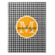A classic houndstooth pattern in black and white with custom name and monogram.