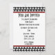 A simple invitation with a houndstooth print design across top and bottom of front. red trim and retro font. Customize with details of your occasion. Opposite side features solid design with a circle shape in the middle, framing text.