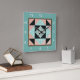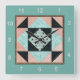 Hourglass Patch Quilt Block Turquoise & Peach Square Wall Clock